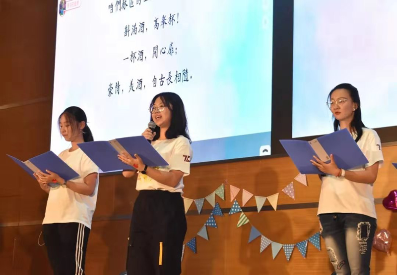 经济三班的同学们为我们带来方言朗诵《祝酒歌》。不同的方言传达着同一个心声,那便是对祖国繁荣与富强的祝愿。现场的观众早已忘了内容,期待着,下一个是否会听到自己的家乡话。