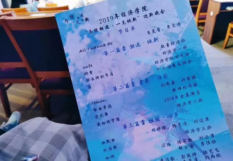 2019年9月29日,由经济学院文艺部、生活部主办,经济学院学生会各部门协助举办的「与经相遇 · 一见倾新」迎新晚会在创业实训中心如期举行。
