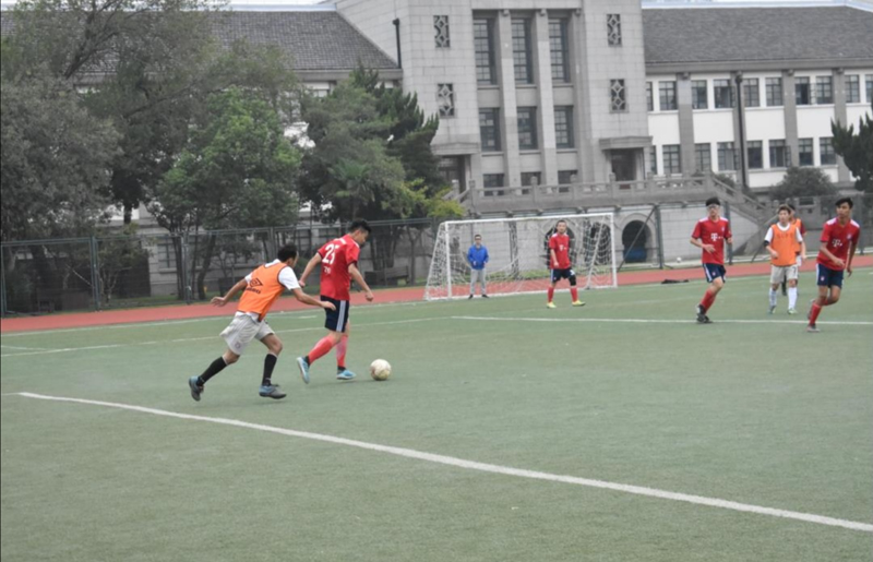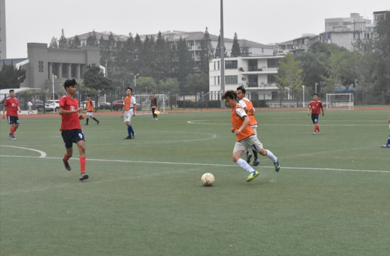 10月8日下午3:36分,经济学院与商学院在足球联赛的第一轮中展开了较量。上半场第6分钟,9号艾孜买提就在禁区右侧获得绝佳机会,可惜最后的射门稍稍偏出。第12分钟,25号张益玮在禁区内依靠个人能力一条龙破门,1-0,经济学院率先打破僵局。但在十分钟后,对手依靠一脚远射将比分扳平。1-1,两队进入中场休息。